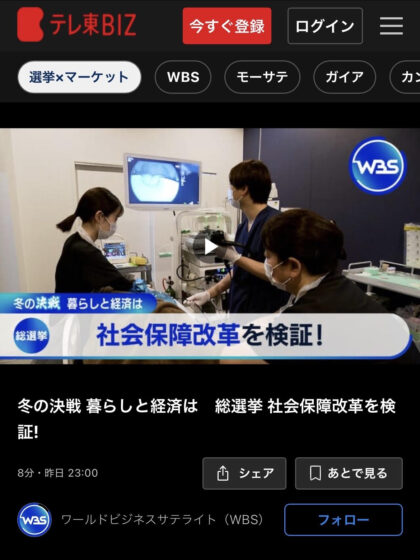 胃カメラ・大腸カメラのAI診断機能(内視鏡AI)について、テレビ東京のワールドビジネスサテライトにTV取材・放送されました!